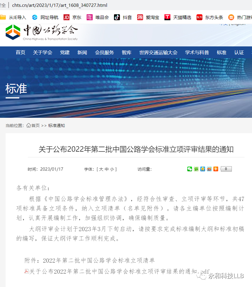 • 熱烈祝賀西安永和科技有限公司“反應(yīng)式高黏冷拌冷鋪瀝青路面技術(shù)”通過(guò)中國(guó)公路學(xué)會(huì)團(tuán)體標(biāo)準(zhǔn)初審認(rèn)定